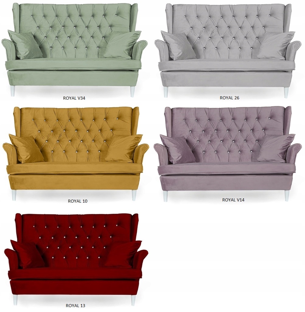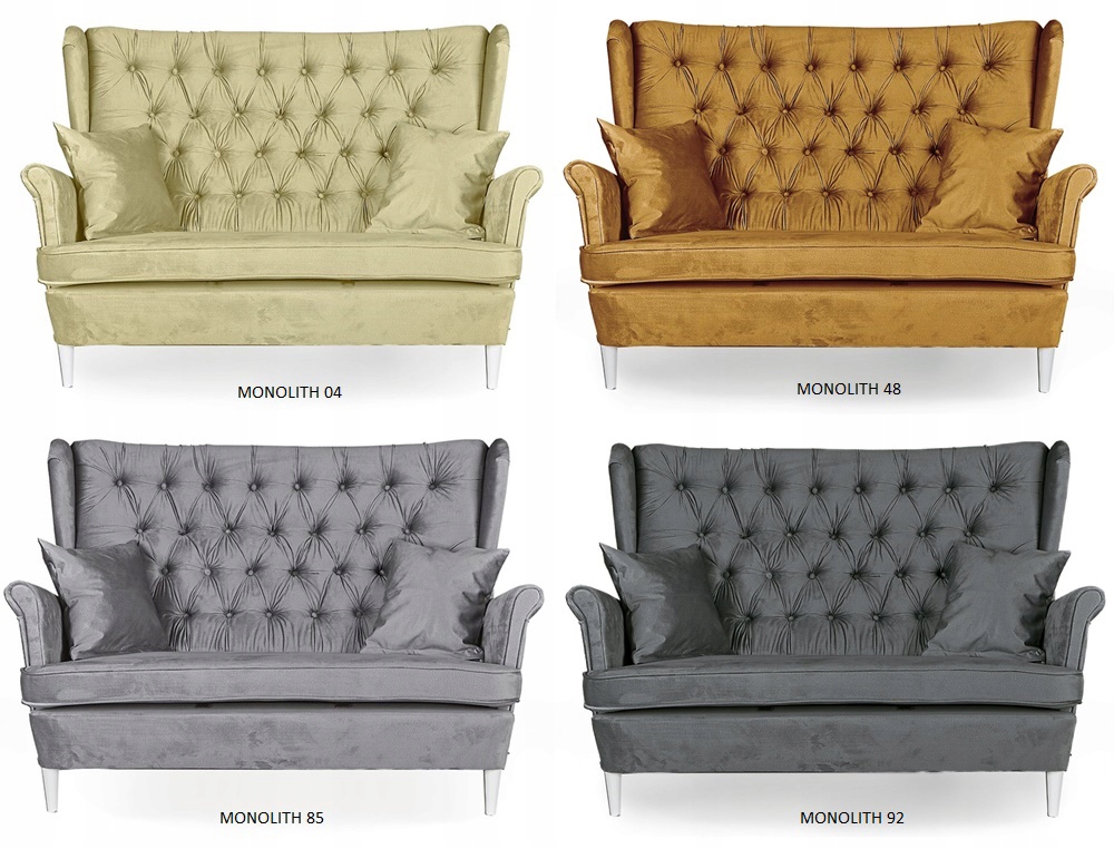 Oparcie tego modelu standardowo zdobione jest guzikami MATERIAŁOWYMI. Na życzenie klienta możemy zamienić je na kryształki Swarovskiego, informację o zmianie należy podać w wiadomości dla sprzedającego podczas składania zamówienia. 🙂